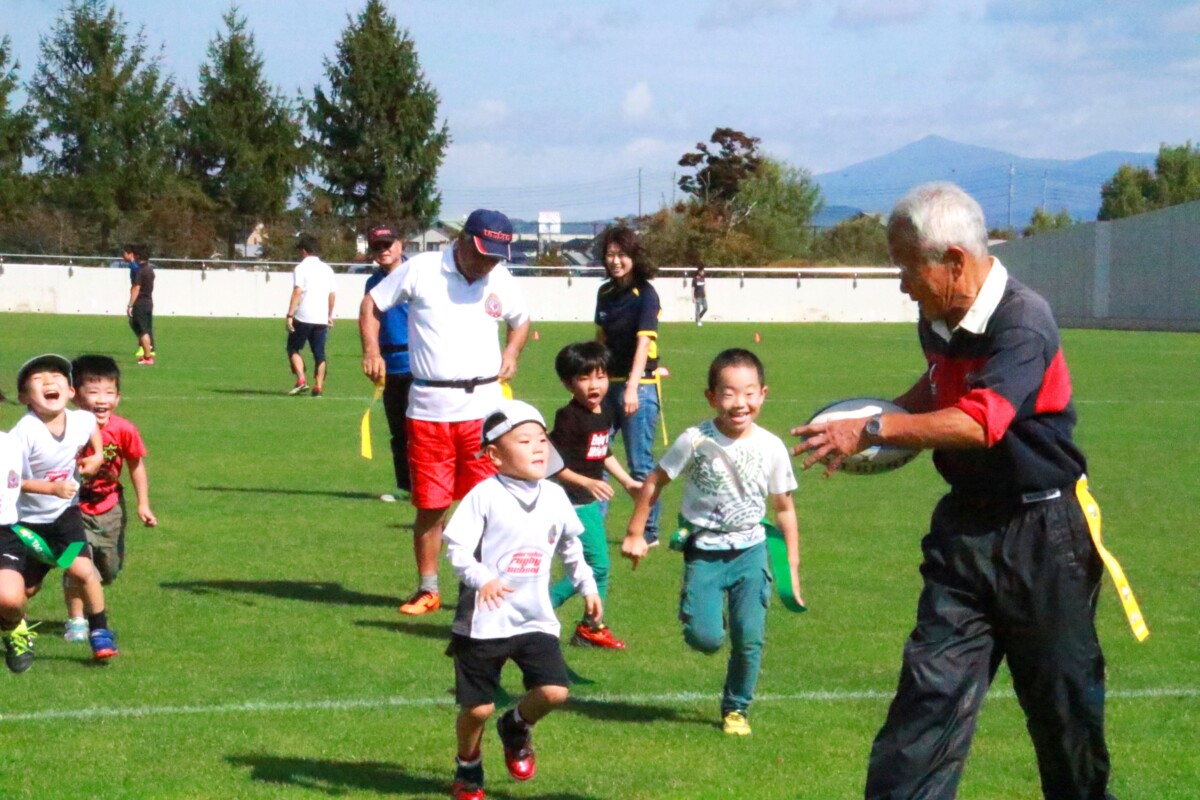 まず最初に参加したのがいわぎんスタジアム(盛岡南公園球技場)で行われた「盛岡タグラグビーフェスティバル」。タグラグビーって何?ラグビーとは違うの?と私自身も知らなかったのですが、タックルなどの身体的接触がなく、代わりに腰に巻いたタグ(リボン)を取ることで相手の前進を止める、子供から大人まで幅広く参加できる安全なボールゲームとのこと。とても景色が良いいわぎんスタジアムの中を、ラグビーボールを追いかけて元気に走り回る姿からパワーをもらえました!