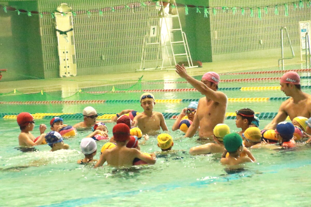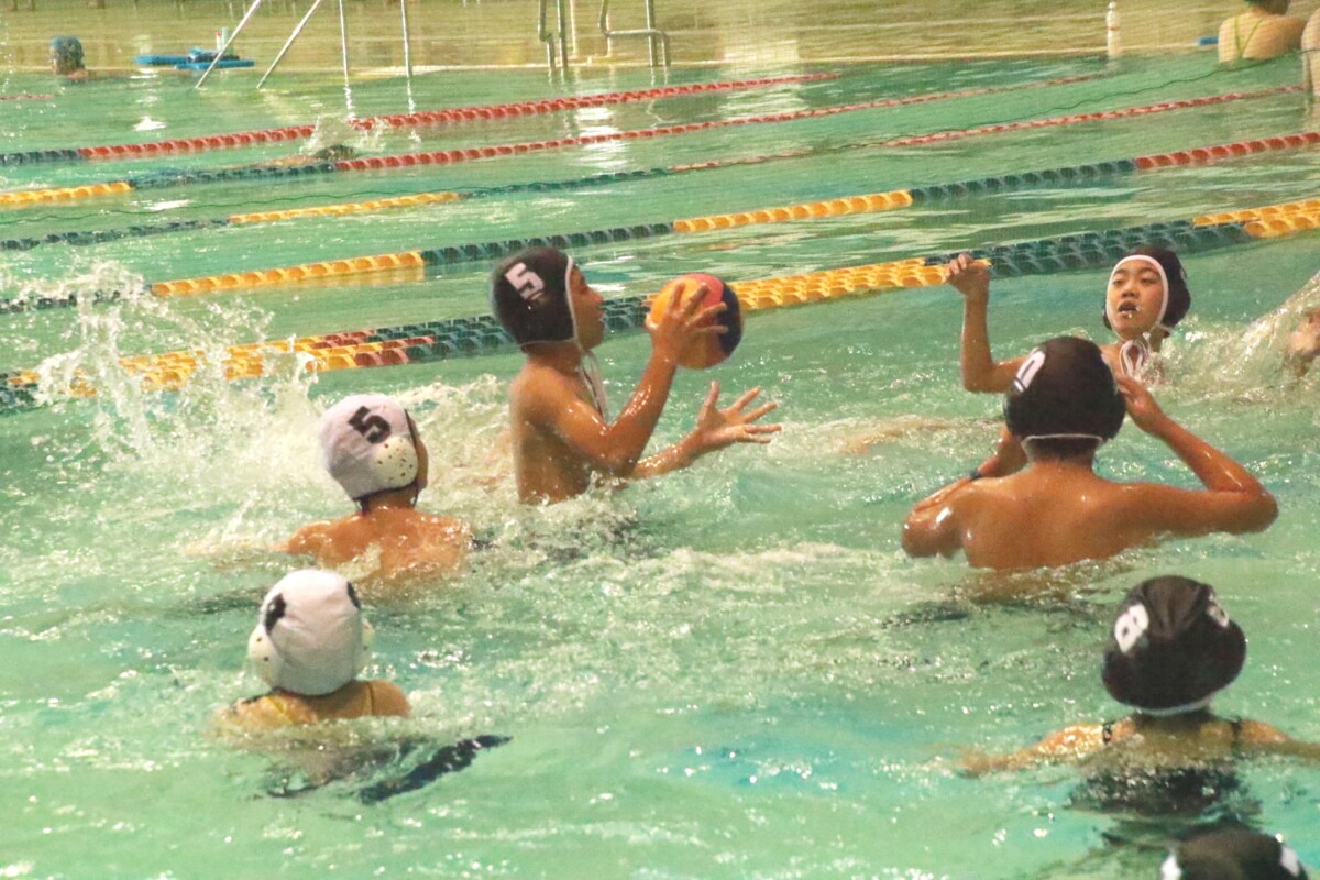 ボールをゴールに向かって投げる練習から、男女混合で2チームに分かれて行う試合まで行われていて、プールの中で楽しそうにボールを追いかけて投げあっていました。私が小学生の時は水に顔をつけられないほど全く泳げなかったので、参加している小学生たちが普通に泳ぎながらボールを追いかけていることに驚くばかり!ここから未来のオリンピック選手が生まれてくることを期待です。