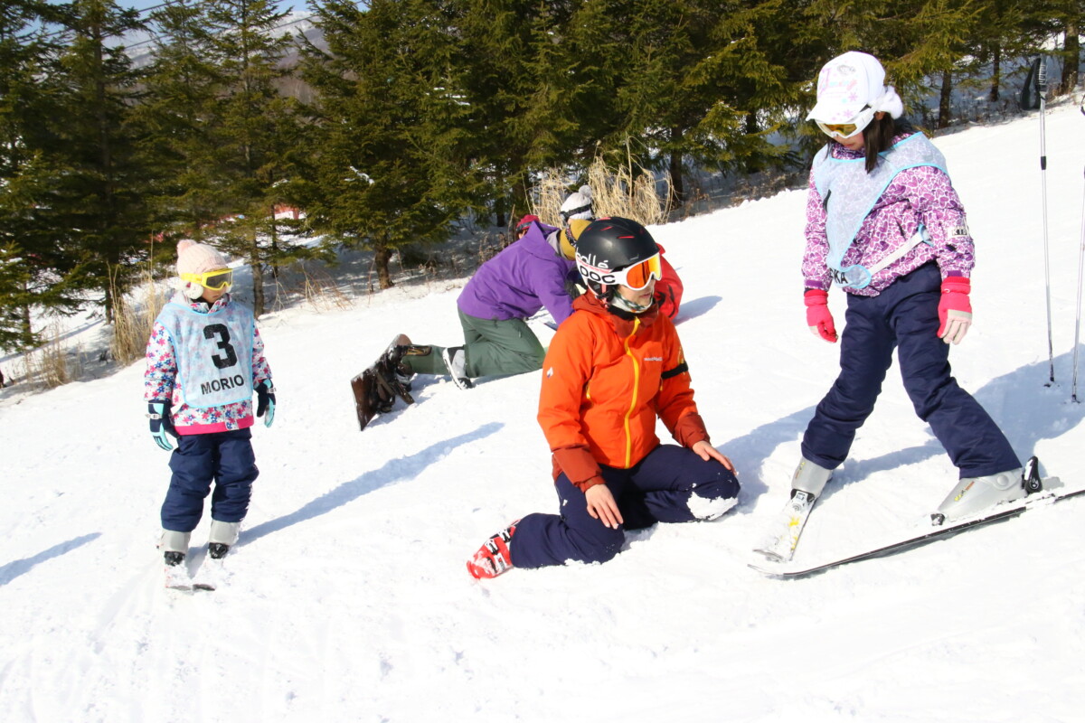 今回の教室は、奇跡のような2日間連続晴天で、受講生全員が最終的にリフトに乗れたのが良かったです。本来は学校などのスキー教室の前に、スキーを一度もやったことのない方が雪への足慣らしとして参加するものですが、今回参加された皆さんは2日間でリフトに乗って上から滑って来られたので、すでに中級から上級レベルではないかと思います。