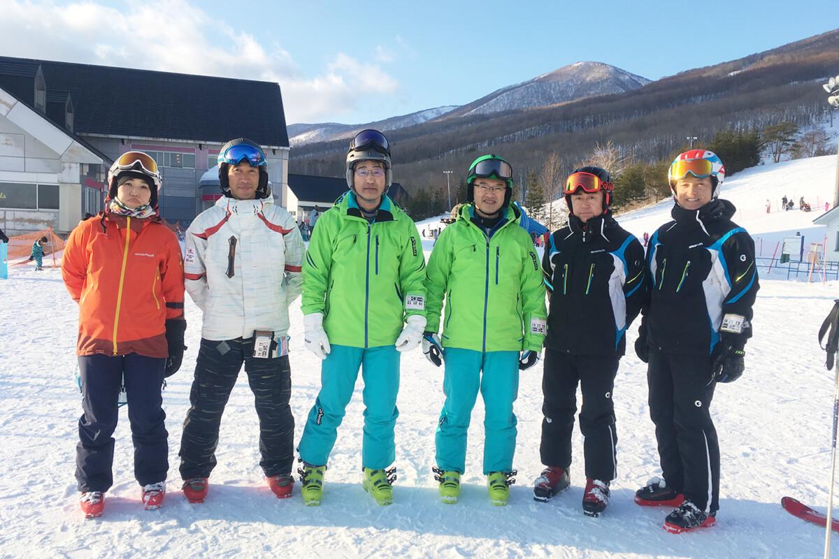 雪の上でも汗をかくくらい天候に恵まれた今回の「初めての方のスキー教室」では、スキーの履き方から、雪の上の歩き方、滑り方の基本まで楽しく分かりやすく教えてもらいました。初めてスキーを体験した方々も、練習では転んだり思うようなところに行かなかったりしながらも、最終的にはリフトで高い所まで登ってゆっくり滑ってくることができてスキーに自信がついたように見えました。